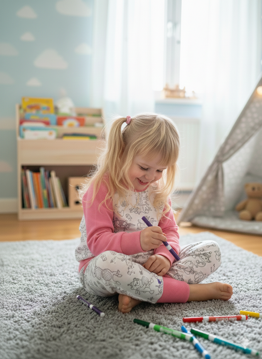 Kreatívna mikina, ktorú si dieťatko zamiluje. Jednoduchý strih a kvalitný materiál zaručí veľkú spokojnosť. Mikinku je možné vyfarbiť fixkami na textil. Buď sú vyprateľné alebo trvácne. Sadu fixiek si môžete doobjednať aj u nás.