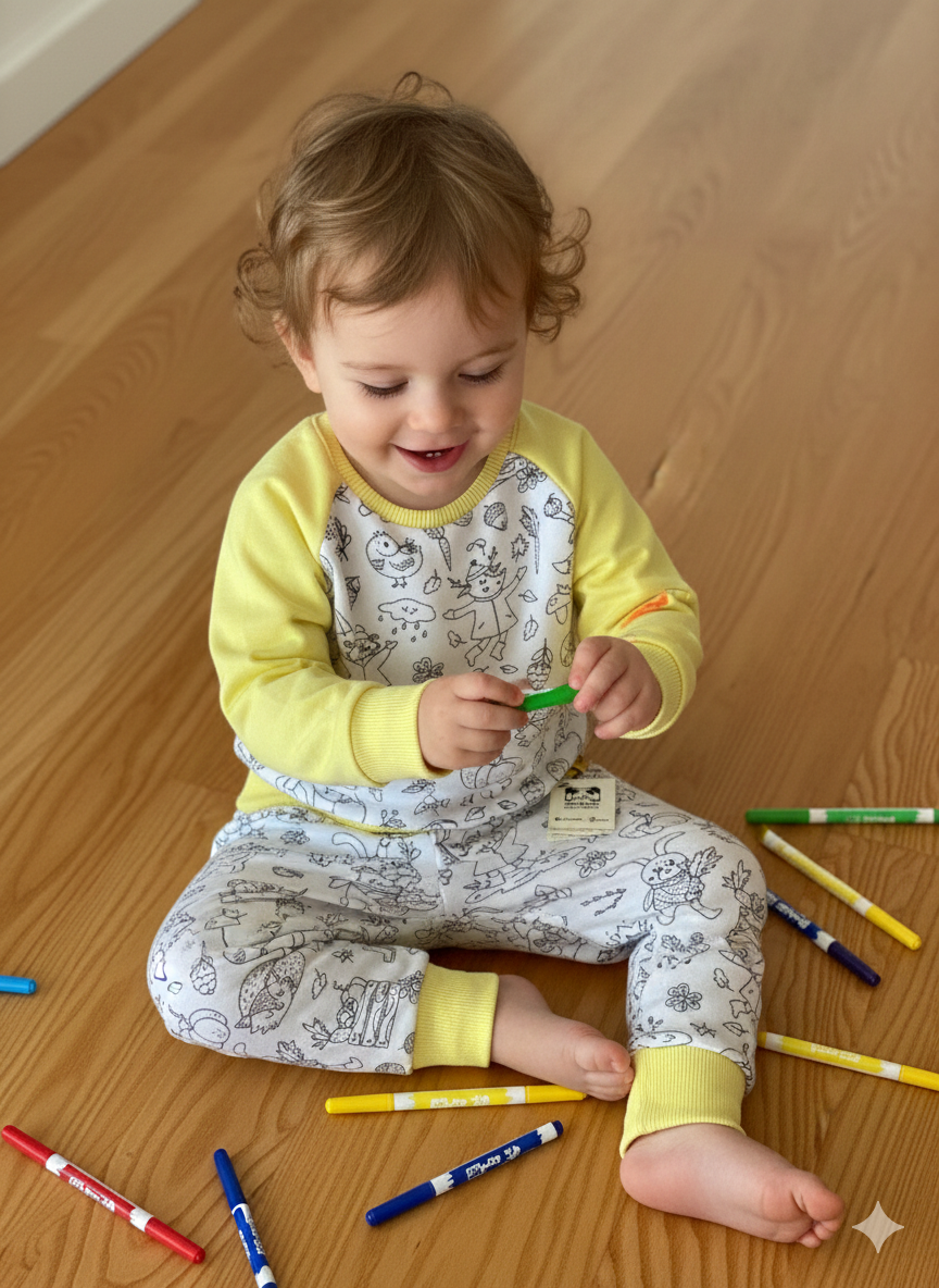 Kreatívna mikina, ktorú si dieťatko zamiluje. Jednoduchý strih a kvalitný materiál zaručí veľkú spokojnosť. Mikinku je možné vyfarbiť fixkami na textil. Buď sú vyprateľné alebo trvácne. Máme v ponuke aj tepláčiky.